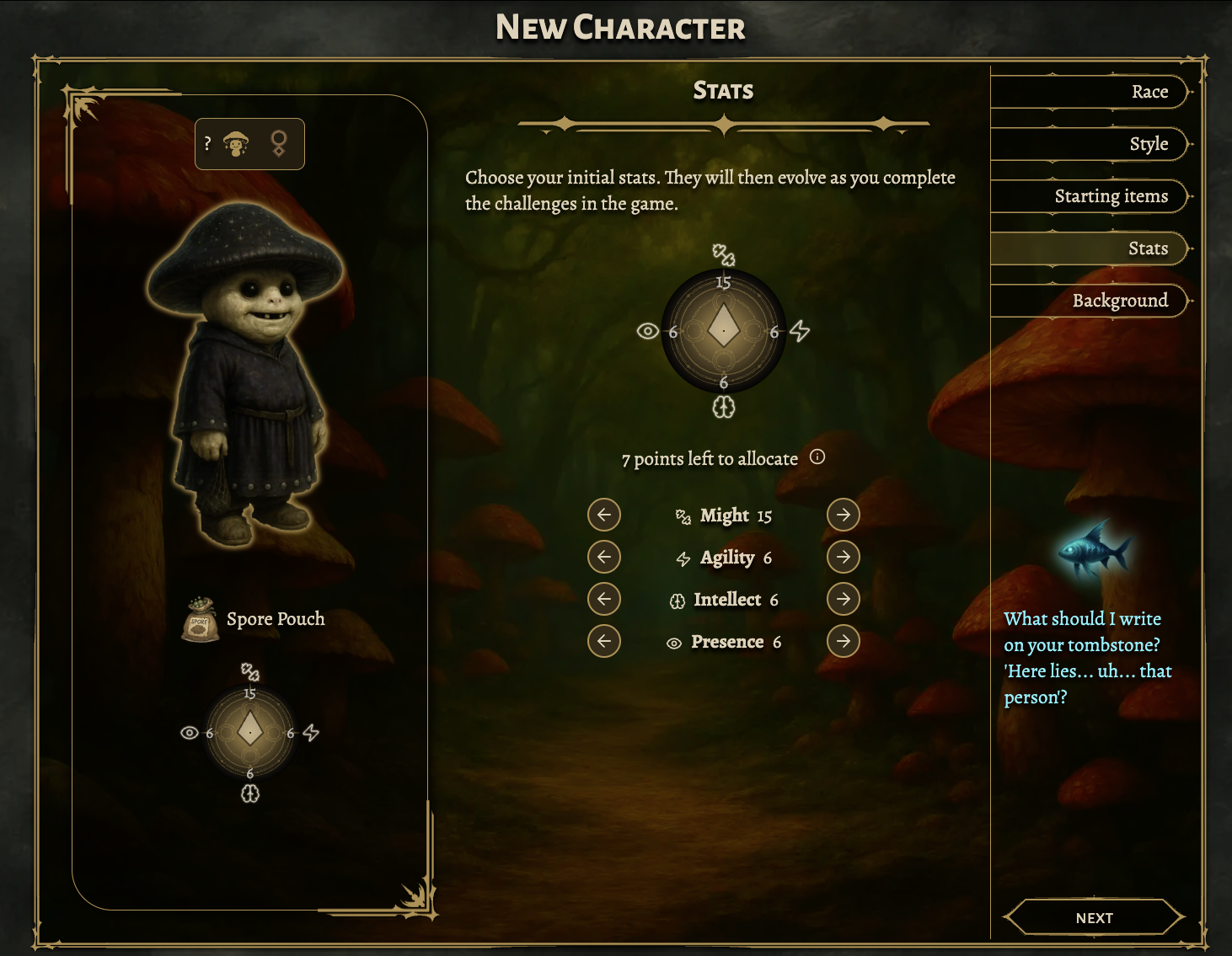 Players begin by creating a character, then develop it through persistent attributes and collectible items. The Tower Crawl world features a 13-level tower to conquer, along with several open-world areas where players can gather materials, uncover secrets, and craft items.
